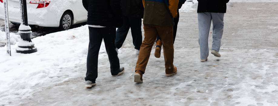 Privilégiez autant que possible les zones déneigées, salées ou exposées au soleil, et évitez les trottoirs ombragés, souvent plus glissants.