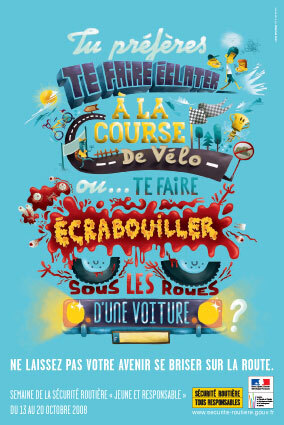 « Ne laissez pas votre avenir se briser sur la route » : tel est le message d’interpellation décliné auprès des jeunes selon leurs tranches d’âge (8 à 11 ans, 12 à 14 ans, 15 à 17 ans et 18 à 25 ans) sur les supports de communication réalisés à l’occasion de la Semaine de la sécurité routière (voir ci contre).