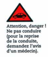 La conduite est strictement déconseillée et la consultation d’un médecin est nécessaire pour la reprise de la conduite.
