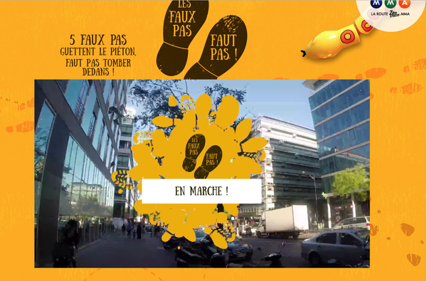 Les piétons représentent près de 15 % de la mortalité routière. Bien que les personnes âgées soient les plus touchées, tout piéton est exposé aux dangers de la route. Après son module vidéo interactif dédié aux cyclistes « Pédaler n’importe comment, c’est n’importe quoi ! », Zérotracas.mma a décidé de reproduire l’expérience pour les piétons avec son nouveau module « Les faux pas, faut pas ! » afin de les sensibiliser aux dangers de la route, de manière ludique.