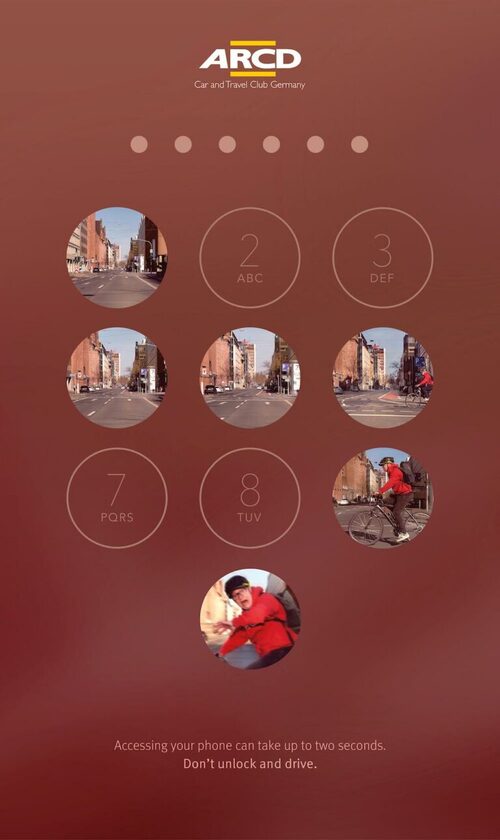 La campagne met ainsi en avant un écran de smartphone verrouillé composé de 10 nombres/images. Au fur et à mesure que l’utilisateur complète le code, des images apparaissent montrant une partie de la route, des photos de piétons, cyclistes, de passagers à bord de leur véhicule et le danger imminent. Cependant, il est déjà trop tard pour l’éviter…