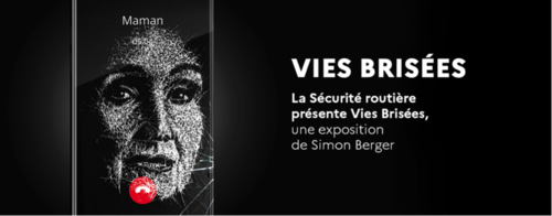 L’artiste sur verre met en scène 5 smartphones de 2,5 mètres de haut sur lesquels sont sculptés des portraits. Ces visages symbolisent les vies qui volent en éclats chaque année à cause d’accidents de la route liés à l’utilisation du téléphone. L’occasion pour tous de se rappeler que « si tu conduis, tu raccroches ».