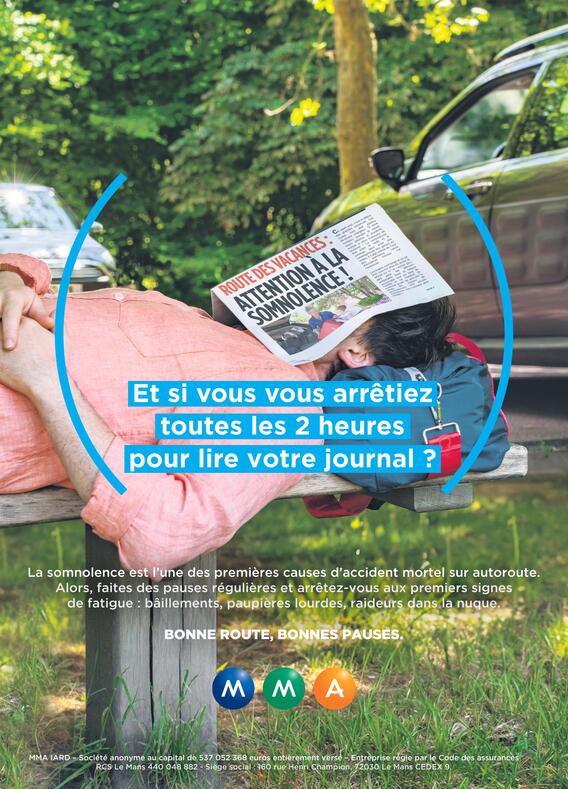 Pour sensibiliser les Français à ce risque à la veille des départs en vacances, MMA lance une campagne de prévention dans la presse. Une sensibilisation essentielle alors que les Français s’apprêtent à faire de longs trajets pour se rendre sur leur lieu de villégiature.