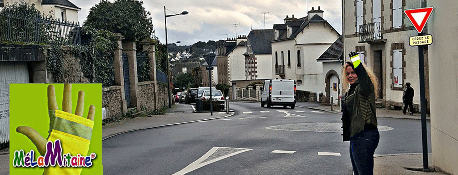 Lancée en 2014 par Mélanie Hémon, animatrice en éducation routière auprès des enfants, la Mélamitaine est une mitaine « haute visibilité » permettant aux usagers les plus vulnérables (enfants, piétons et cyclistes) d’être davantage visible de jour comme de nuit sur la route.